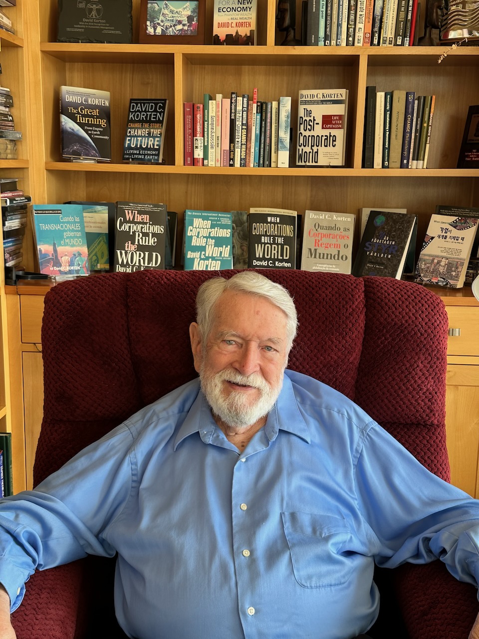 David Korten is an author, lecturer, and former Harvard Business School professor, who is best known for his book When Corporations Rule the World (1995)–the first of his three international best sellers. Initially concerned about the impacts of corporate globalization, he has dedicated the past 30+ years advocating to realign the interests of business with the wellbeing of living people and nature.